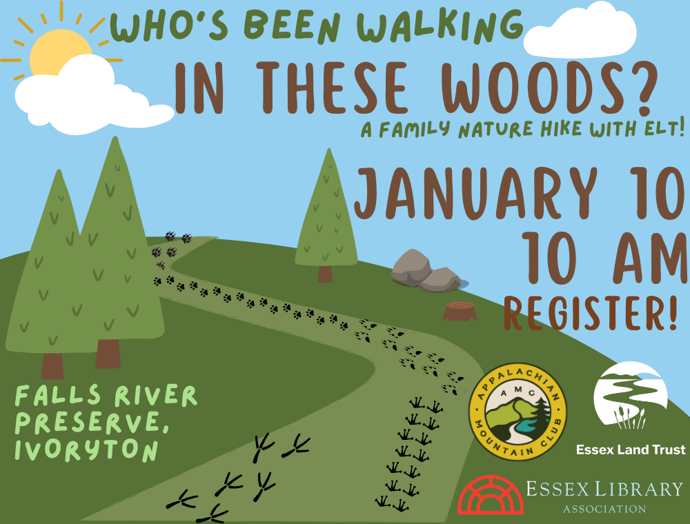 Have you ever come across mysterious animal tracks while wandering through the woods and wondered, “Who’s been walking in these woods?” Discover the answers on a special family-friendly, Essex Land Trust hike led by Naturalist Phil Miller.