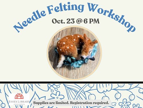 Fiber Artist Kaitlin Cahill will lead a workshop on needle felting where participants will learn various techniques to create a 3-dimensional sleeping fawn using a barred needle and wool. Supplies are limited, so registration is required. This program is FREE and open t...