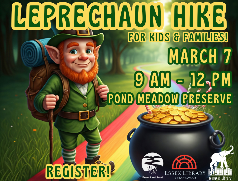 Join Essex Land Trust, Essex Library, and Ivoryton Library for some St. Patty’s Day fun with a self-guided family hike where you’ll follow the Leprechaun Trail to find the Pot of Gold. Families may arrive any time between 9:00 AM and 12:00 PM and follow the trail at...