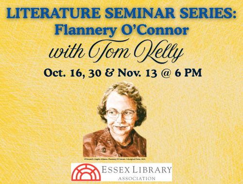 This fall, take a deep dive into three of Flannery O’Connor’s short stories with Tom Kelly as he leads a literature seminar series at Essex Library. O’Connor, an American novelist and short story writer, is well known for her Southern Gothic writing style and major contributions to American Literature, before her death from lupus at the young age of 39. This program will help participants read critically, focusing on specific writing techniques used by the author to create meaning. Kelly will also help participants identify patterns, representations and ideas found in the following short stories. Oct. 16 – “A Good Man is Hard to Find” by Flannery O'Connor Oct. 30 – “Revelation” by Flannery O'Connor Nov. 13 – “The River” by Flannery O'Connor This program is free and open to the public regardless of residency at Essex Library, 33 West Avenue, Essex, CT. Seating is limited. Registration is required. Please email Adult Services Librarian Elizabeth Reinhart at ereinhart@essexlib.org if you need assistance locating these selected works by O’Connor. About Tom Kelly Thomas Kelly earned a B.A. in English from Wesleyan University in 1981, and an M.A. in Fine Arts from the University of Connecticut in 1984. He taught English for […]